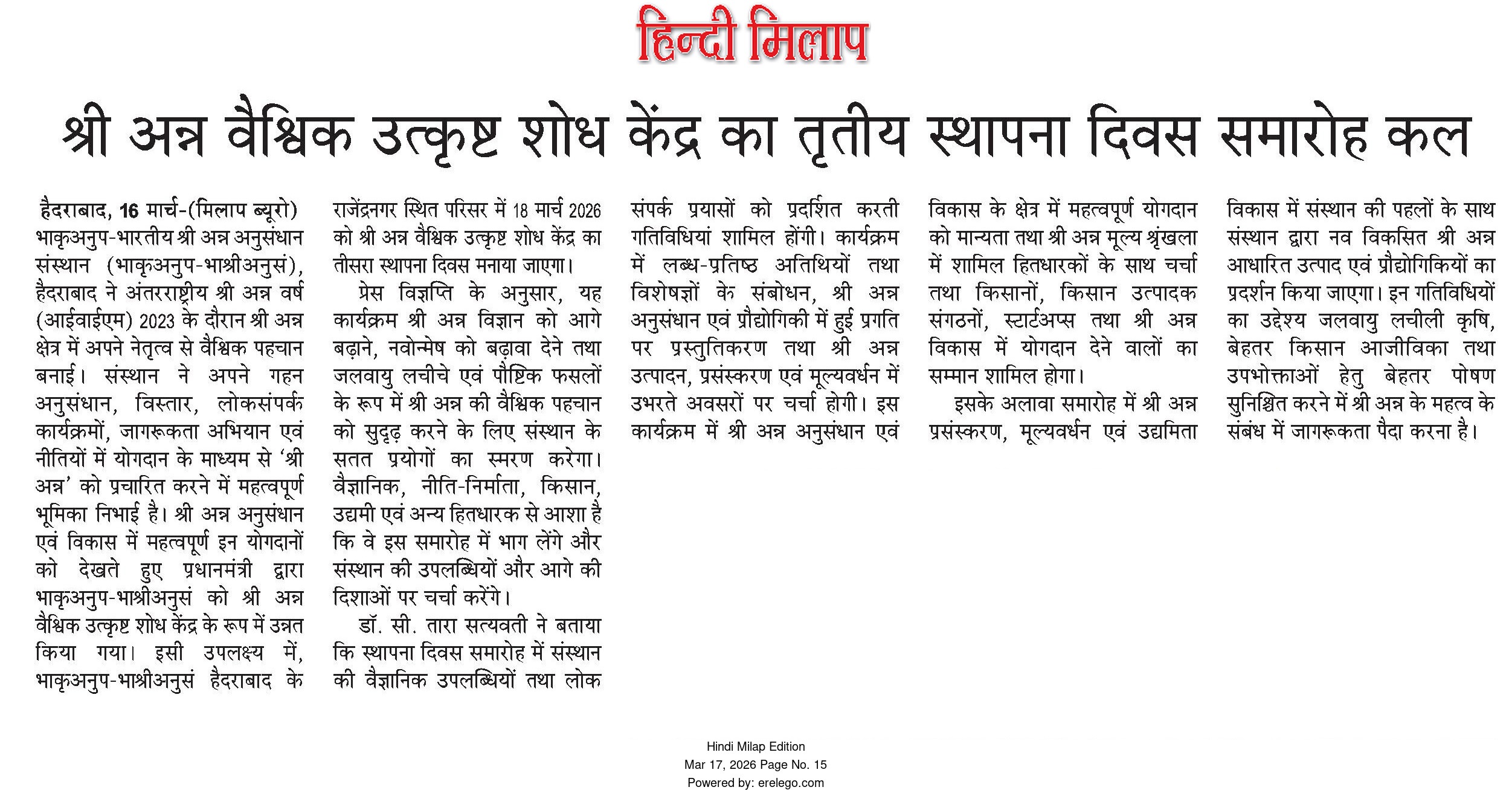 | Hindi Milap | 17 Mar 26 | 15 |