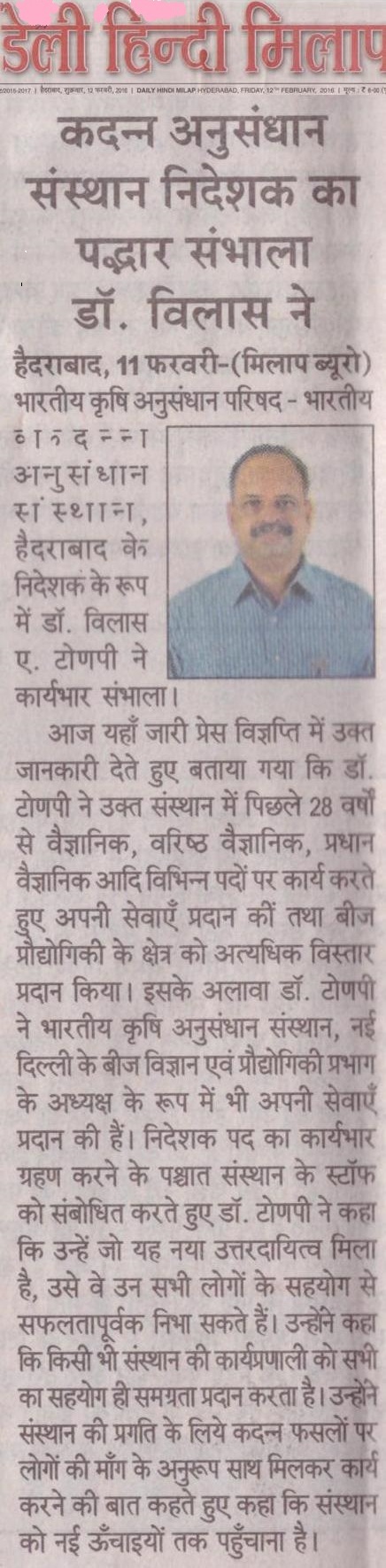 92 | Hindi Milap Hyderabad | 12 Feb 16 | 3 |