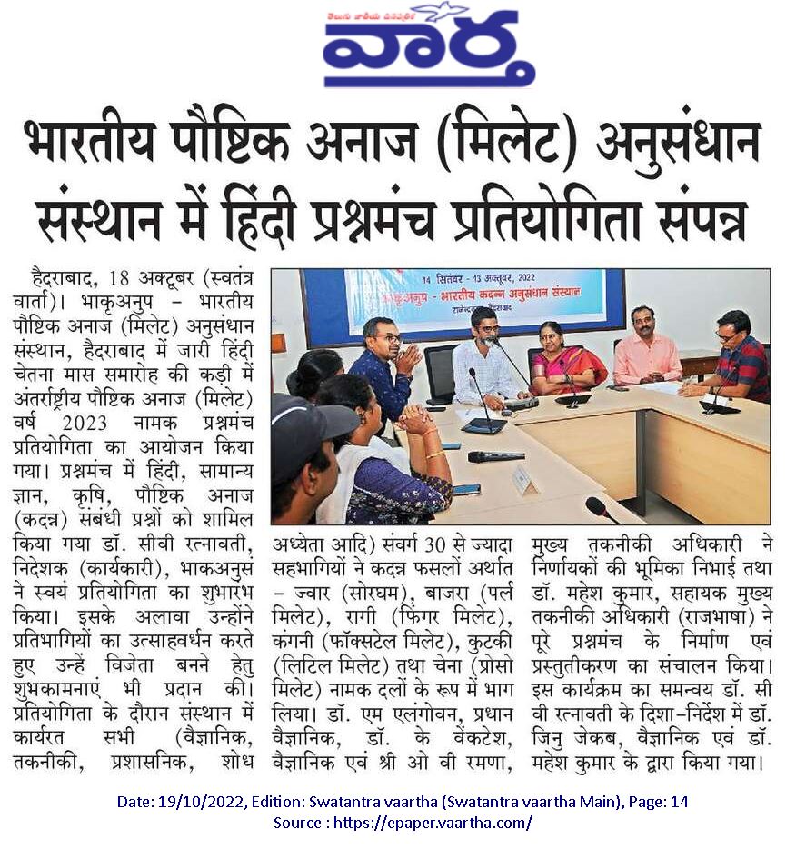 14 | Swatantr varta, Hyderabad | 19 Nov 2010 | 16 |