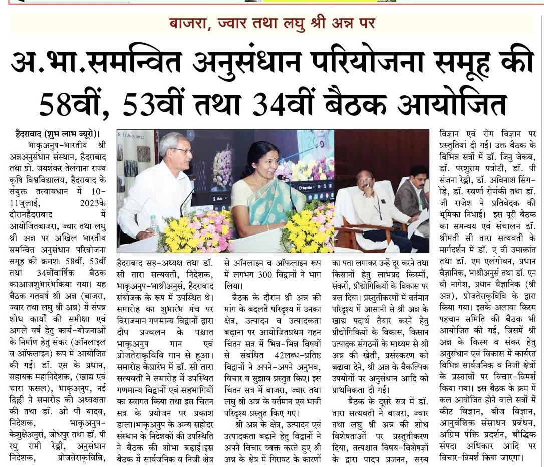 PR | Press Release: Sorghum is profitable, healthy and helps in mitigating global warming claimed ICAR scientists Hyderabad | 22 Nov 2011 | |