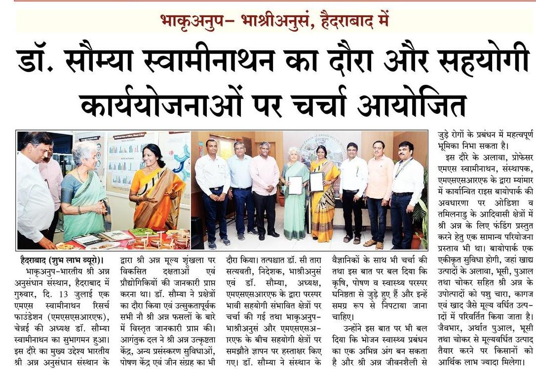 - Entrepreneurship Foundation Program In Millets (EFPM) Dates :: 13-16th October 2025 One day training programme on Cooking with Millets on 25th September 2025 One day training programme on Startup Ignition Training - Emerging Bussiness Opportunities in Processing of Millets Sector on 26th September 2025